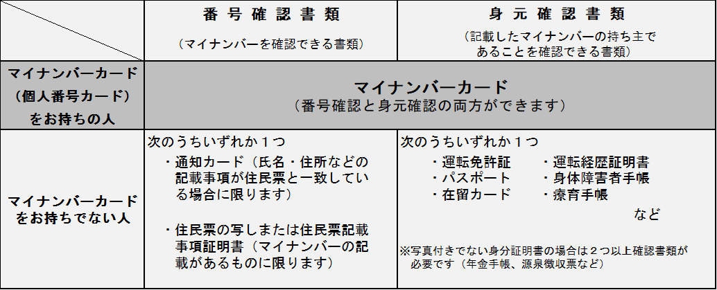 そのほか、下記(1)~(9)に該当する人は各欄に記載している書類
