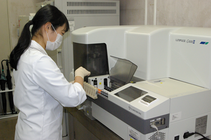 採取された血液を遠心分離することで血球と血清部分に分かれます。このうち、黄色部分の血清を検査機器で分析することにより、HIV、梅毒及びB型・C型肝炎ウイルスの検査を実施しています。