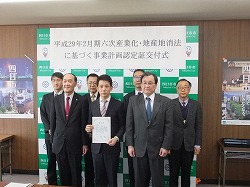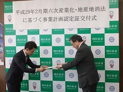 六次産業化・地産地消法に基づく事業計画の認定証交付式