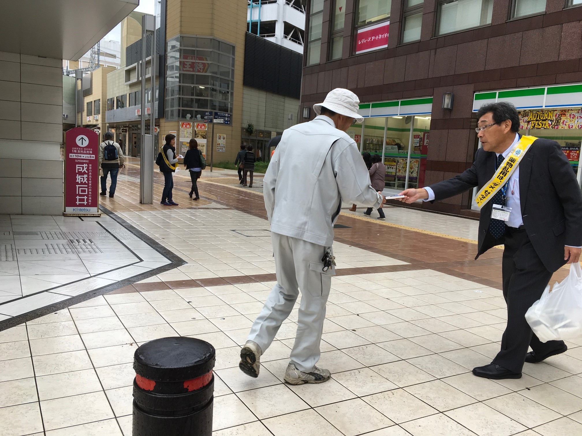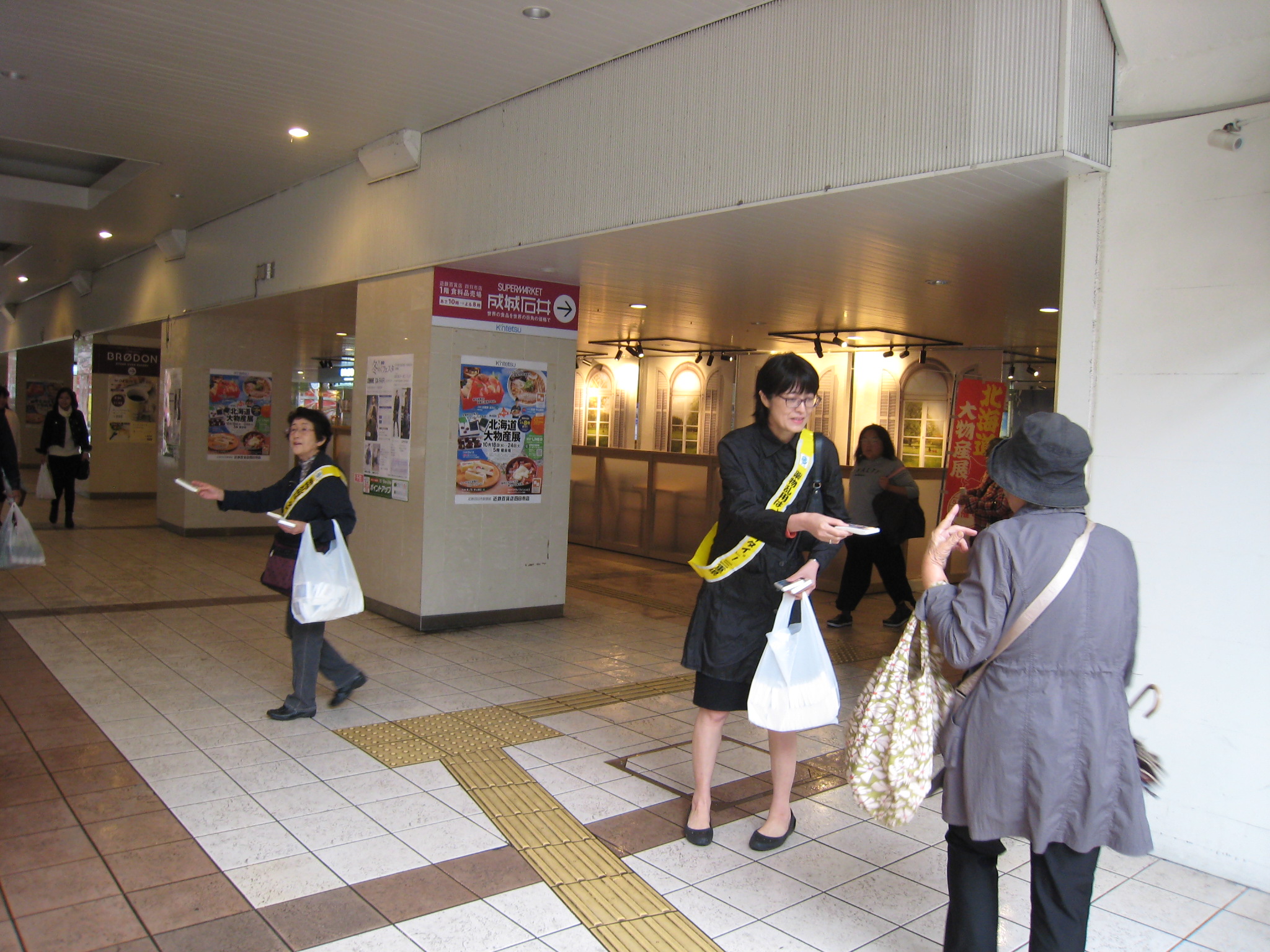 (2) 街頭啓発:呼びかけと啓発資材(ティッシュ)の配布