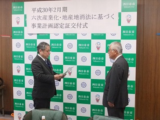 六次産業化・地産地消法に基づく事業計画の認定証交付式