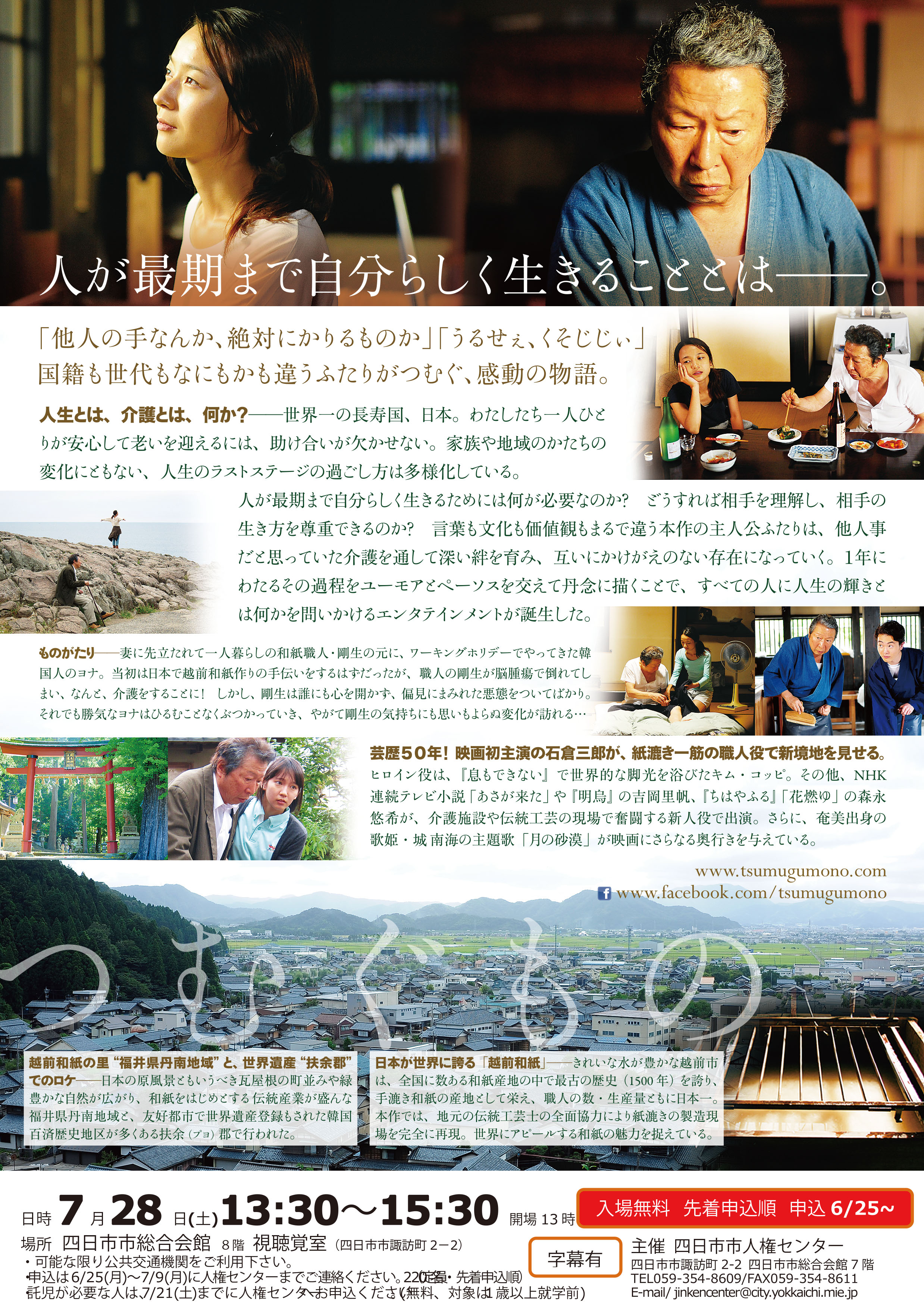 「よっかいち人権大学あすてっぷ2018 」の公開講座、映画「つむぐもの」上映会を開催します。