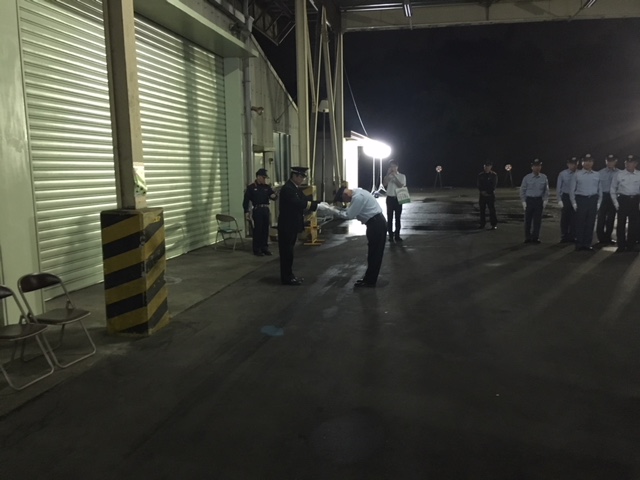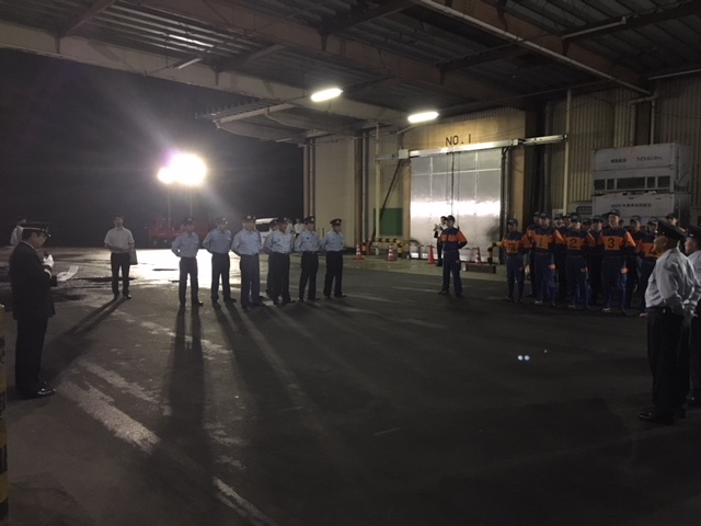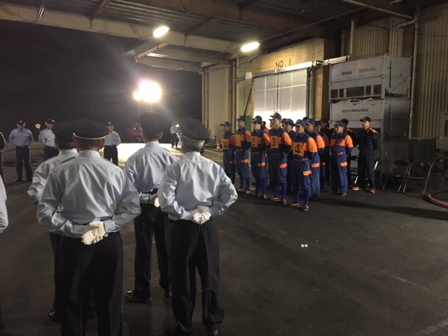 平成30年7月6日(金)に山之一色町操法訓練会場において、三重県消防操法大会に北勢支会三泗支部の代表として出場する四日市市消防団県(あがた)分団の激励に、北勢支会副支会長の木曽岬町消防団長をはじめ、菰野町、川越町、朝日町の各消防団長、四日市市からは、消防団正副団長、世話人分団長、四日市市消防本部から消防長をはじめ消防職員幹部が参加しました。
