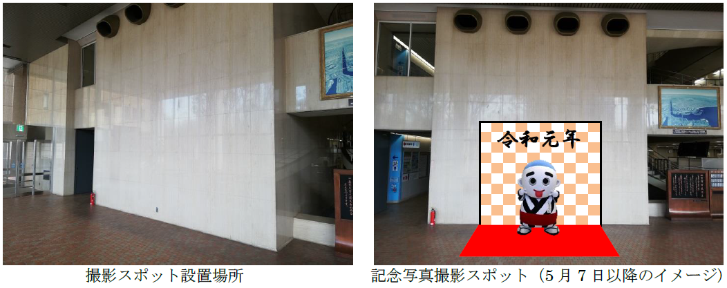 本年5月1日から元号が「令和」となるにあたり、来庁者が自由に記念撮影を行えるスポットを下記のとおり常設で設置します。
