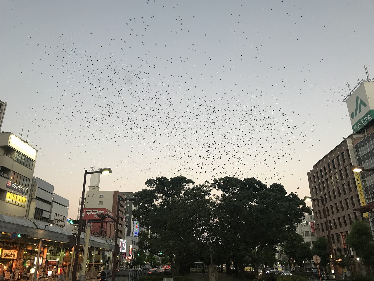 近鉄四日市駅から国道1号にかけての中央通りのクス並木に飛来したムクドリを追い払うため、平成29年度より実施しております鷹匠による放鷹(ホウヨウ)を、今年度も実施いたします。