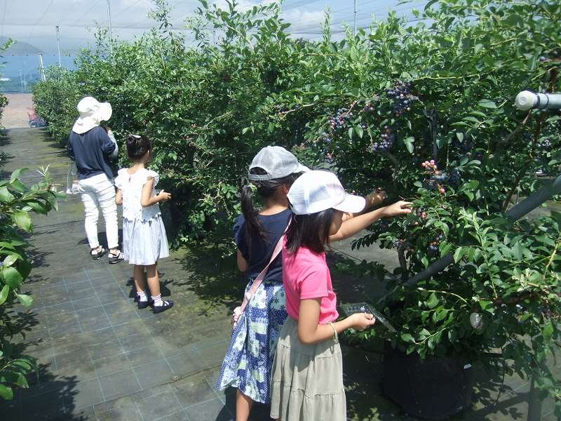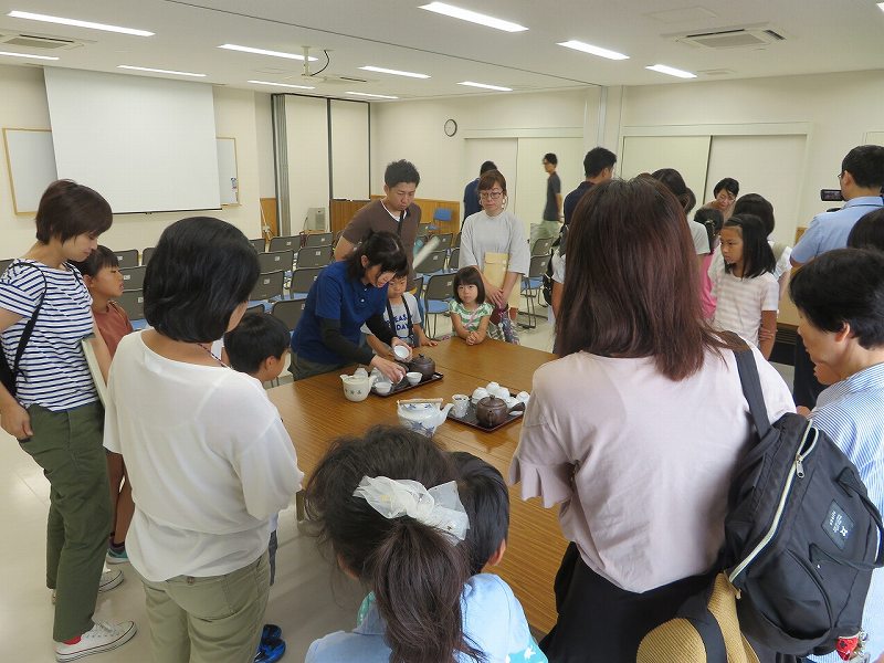 8月9日(金)は、14組43人が参加しました。まず、茶業振興センター(水沢町)を訪れ、お茶についての話を伺い、お茶のおいしい入れ方を学びました。つぎに、さくらベリーズガーデン(桜町)を訪れ、ブルーベリーの摘み取り体験をしました。最後に、ユーユーハウス株式会社(智積町)にて、キクラゲ狩り体験を行いました。