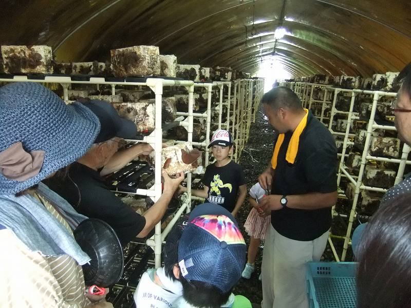 8月23日(金)は、14組44人が参加しました。まず、茶業振興センター(水沢町)を訪れ、お茶についての話を伺い、お茶のおいしい入れ方を学びました。つぎに、haruいちご農園(上海老町)を訪れ、生産者の内田氏よりぶどうの話を伺いました。最後に、ユーユーハウス株式会社(智積町)にて、キクラゲ狩り体験を行いました。