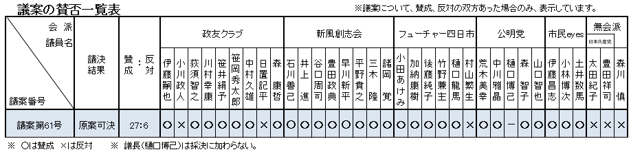 | 議案第61号 | 市立四日市病院事業の設置及び経営の基本に関する条例の一部改正について | 原案可決 |