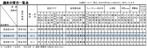 | 議員提出議案 | 議案名 | 議決結果 | |