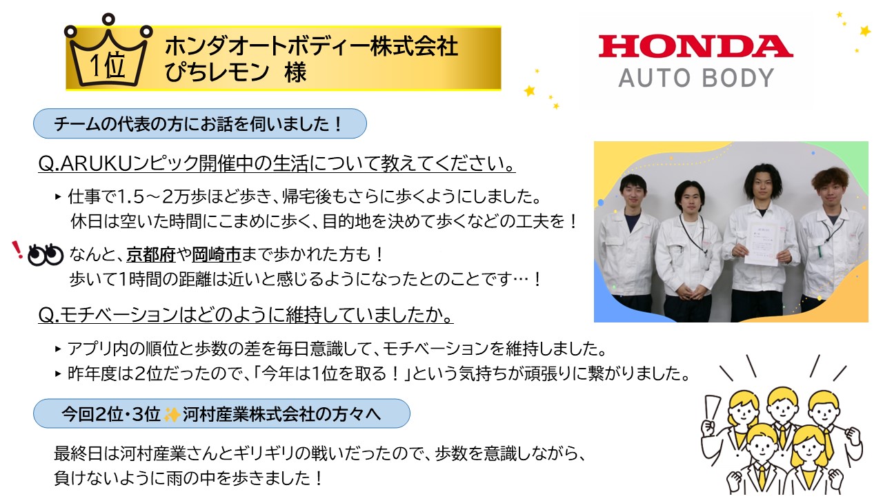 令和7年度 企業対抗!四日市をARUKUンピック 入賞チームの取り組みを紹介します!