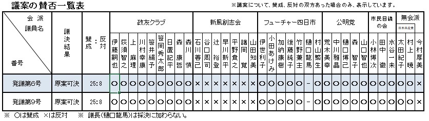 議員提出議案 議案名 議決結果