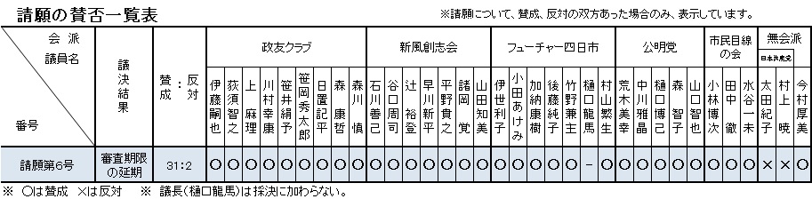 | 請願第5号 | 四日市市中心市街地における公設喫煙所の設置を求めることについて | 採択 | 全員 |