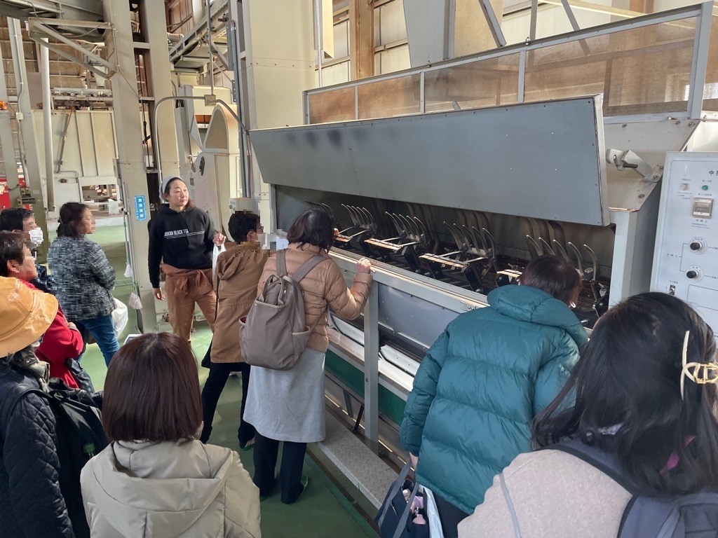 ・ハサマ共同製茶組合(川島町) 和紅茶・煎茶の加工施設と茶刈り機等の見学を行いました。参加者の方は、工場内に設置されている大きな機械にとても驚いていました。見学終了時には、お茶を試飲いただきました。