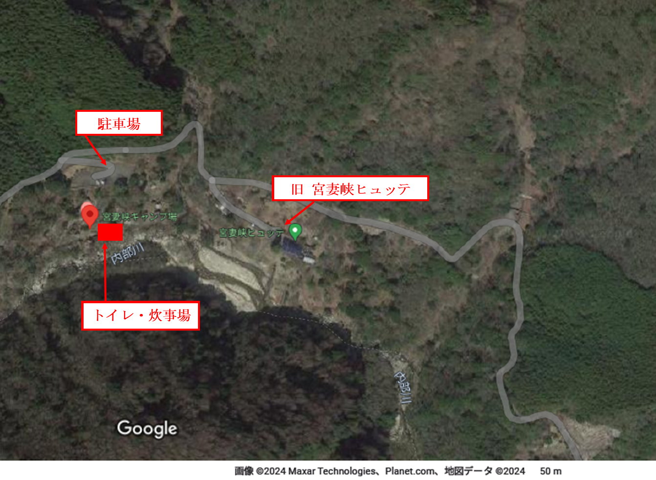 ・工事場所は宮妻峡ヒュッテ敷地内です。