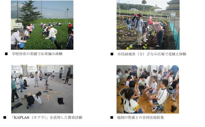 山々が目前に広がる自然に恵まれた伸び伸びとした環境のなかで、地域と学校との密接な連携により、生産者等の指導を受けながら、お茶栽培、米づくり、花植え体験など様々な体験活動ができます。また、小規模校である強みを生かして一人ひとりがわかる授業づくりに取り組み、多様な相手との対話的な学びを進め、自らの考えを伝え、他者の考えを聴く機会の充実を図っています。これらを通してお互いの違いを認め合うなかまづくりや学び合いを大切にしています。