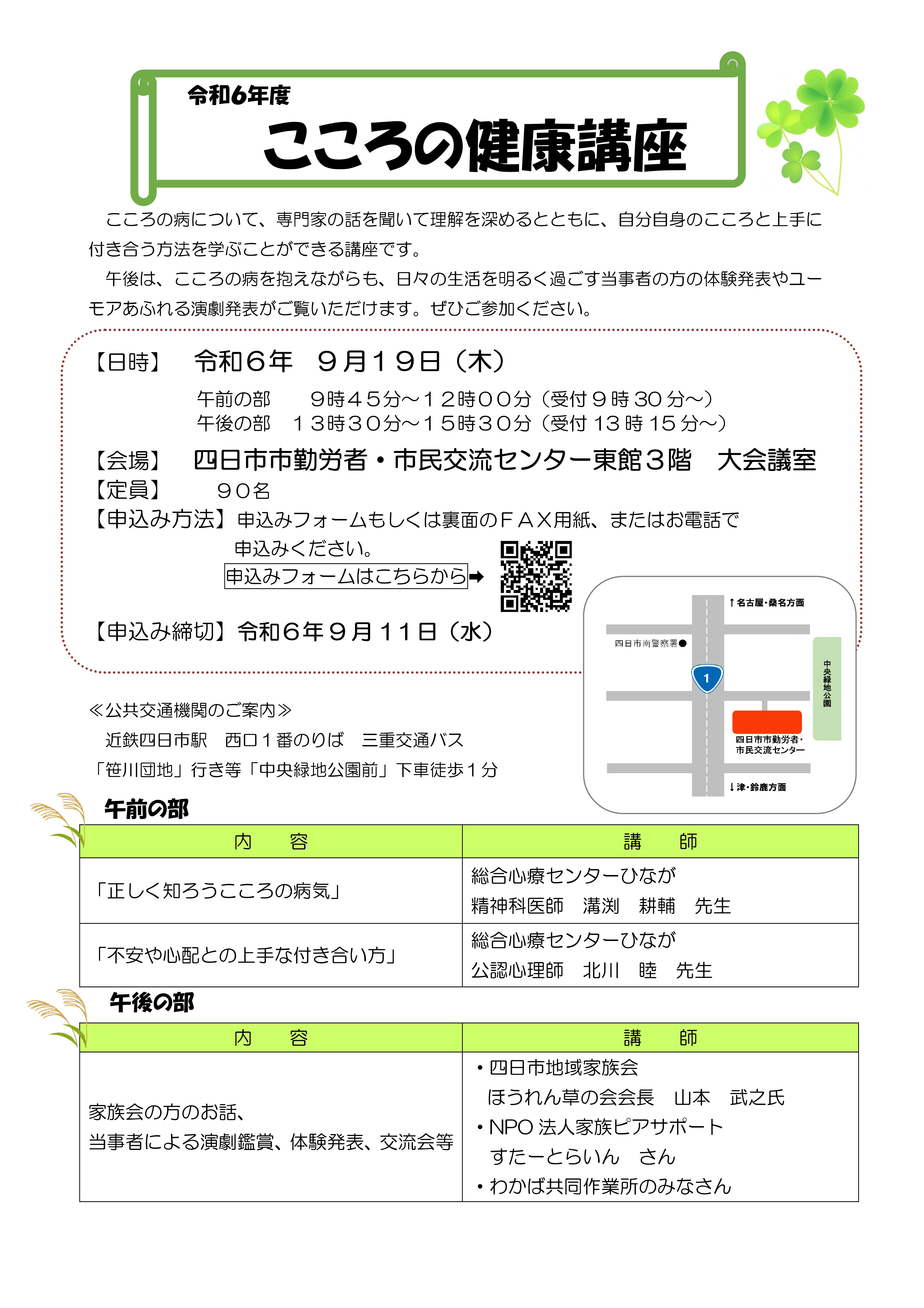 令和06年08月23日 記者発表資料 令和6年度こころの健康講座 受講者募集