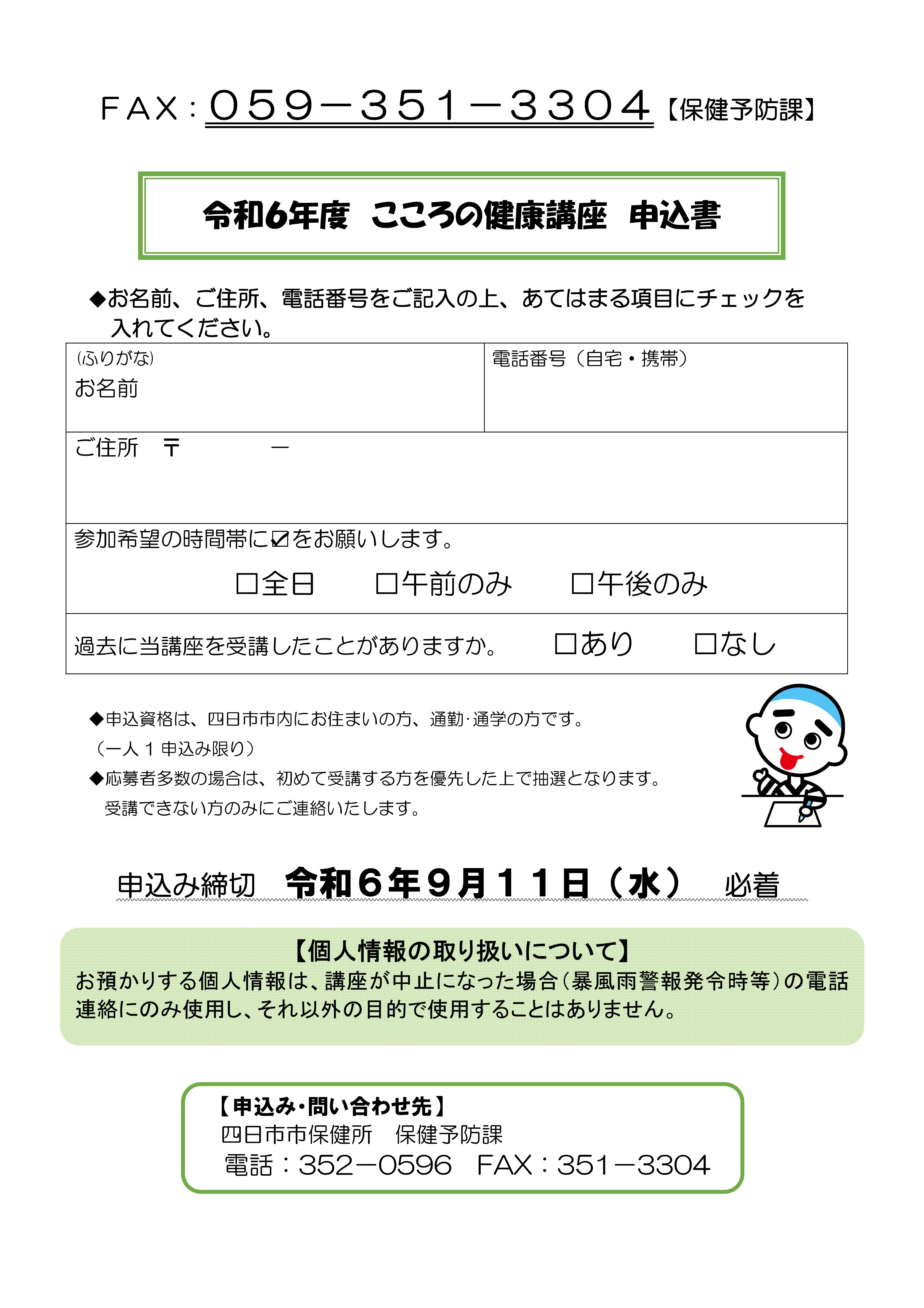 ・9月11日(水)までに、下の申込みフォームまたは電話、FAX(351-3304)にてお申し込みください。
