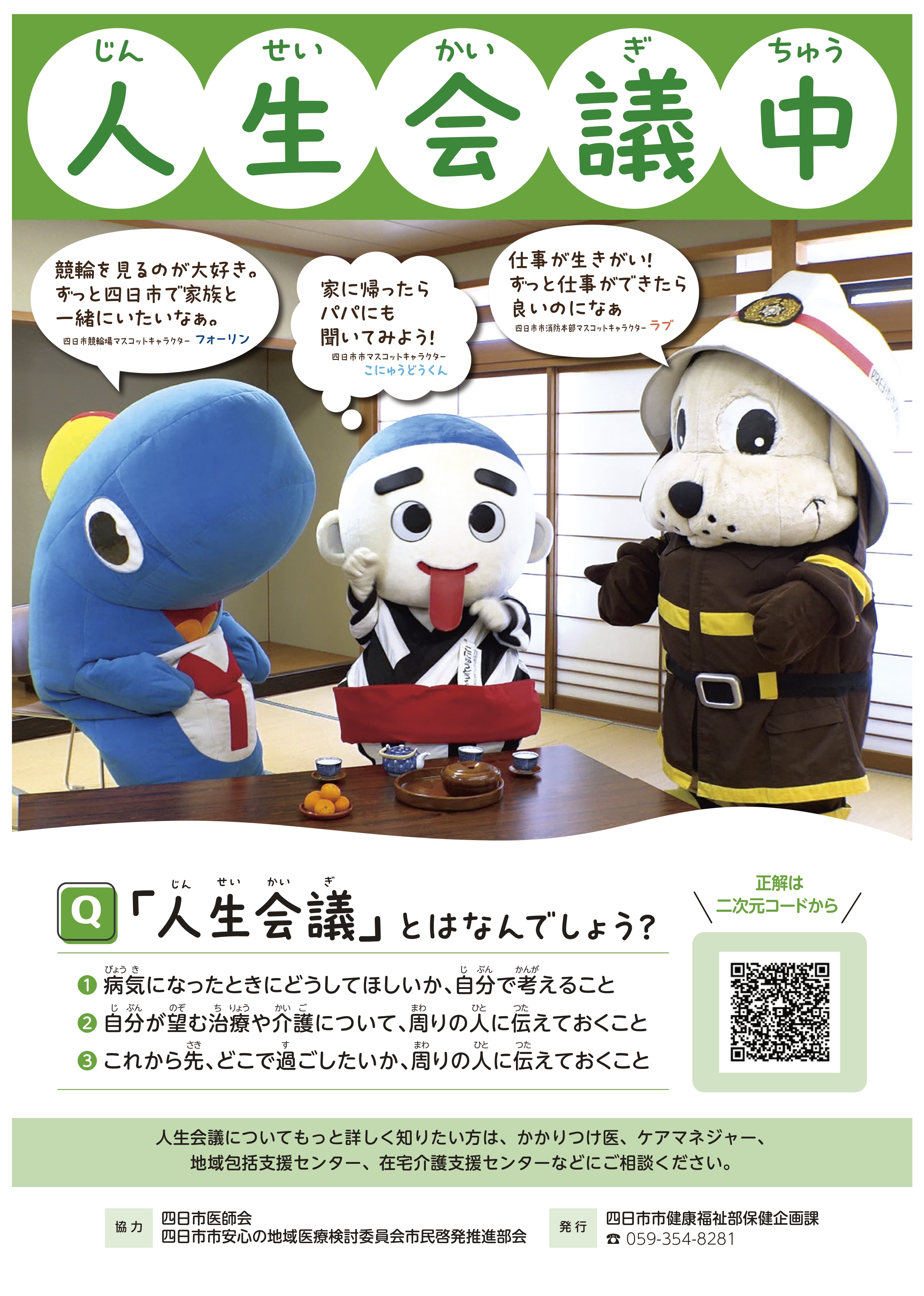 また、厚生労働省では、11月30日(いい看取り・看取られ)を「人生会議の日」とし、人生の最終段階における医療・ケアについて考える日としています。
