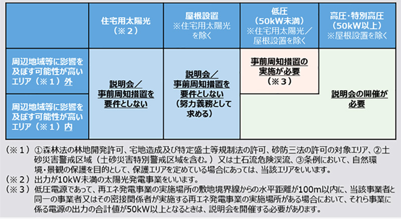 説明会又は事前周知措置を実施すべき再エネ発電事業の範囲