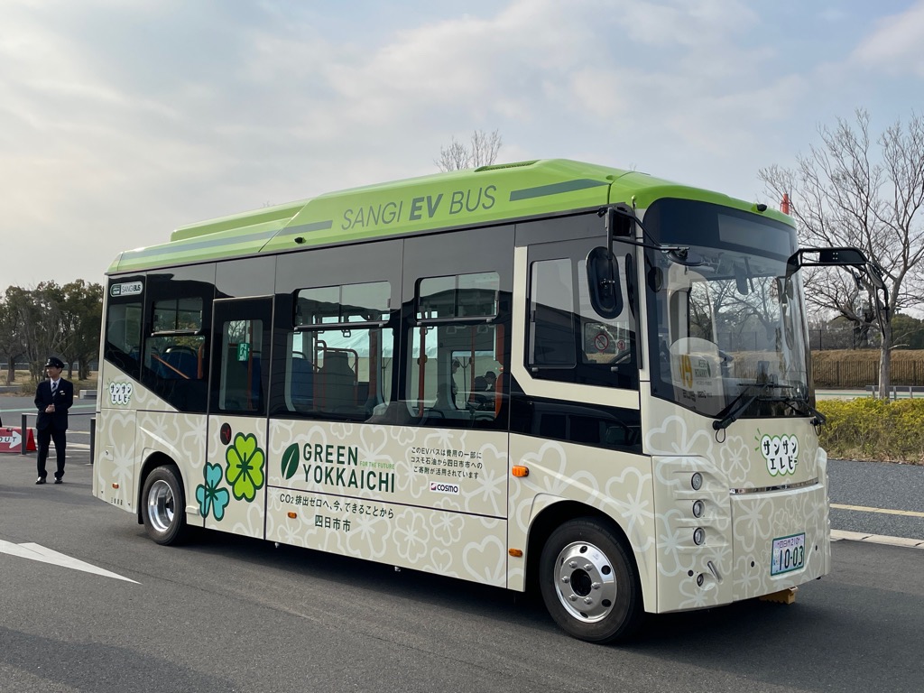 ゼロカーボンシティを目指してEVバスが市内を走行中