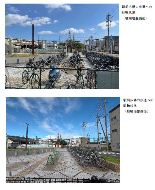 新しい駐輪場の完成により、駐輪場不足及び駅前広場の歩道への駐輪を解消し、駅利用者等の安全かつ円滑な通行が確保できます。