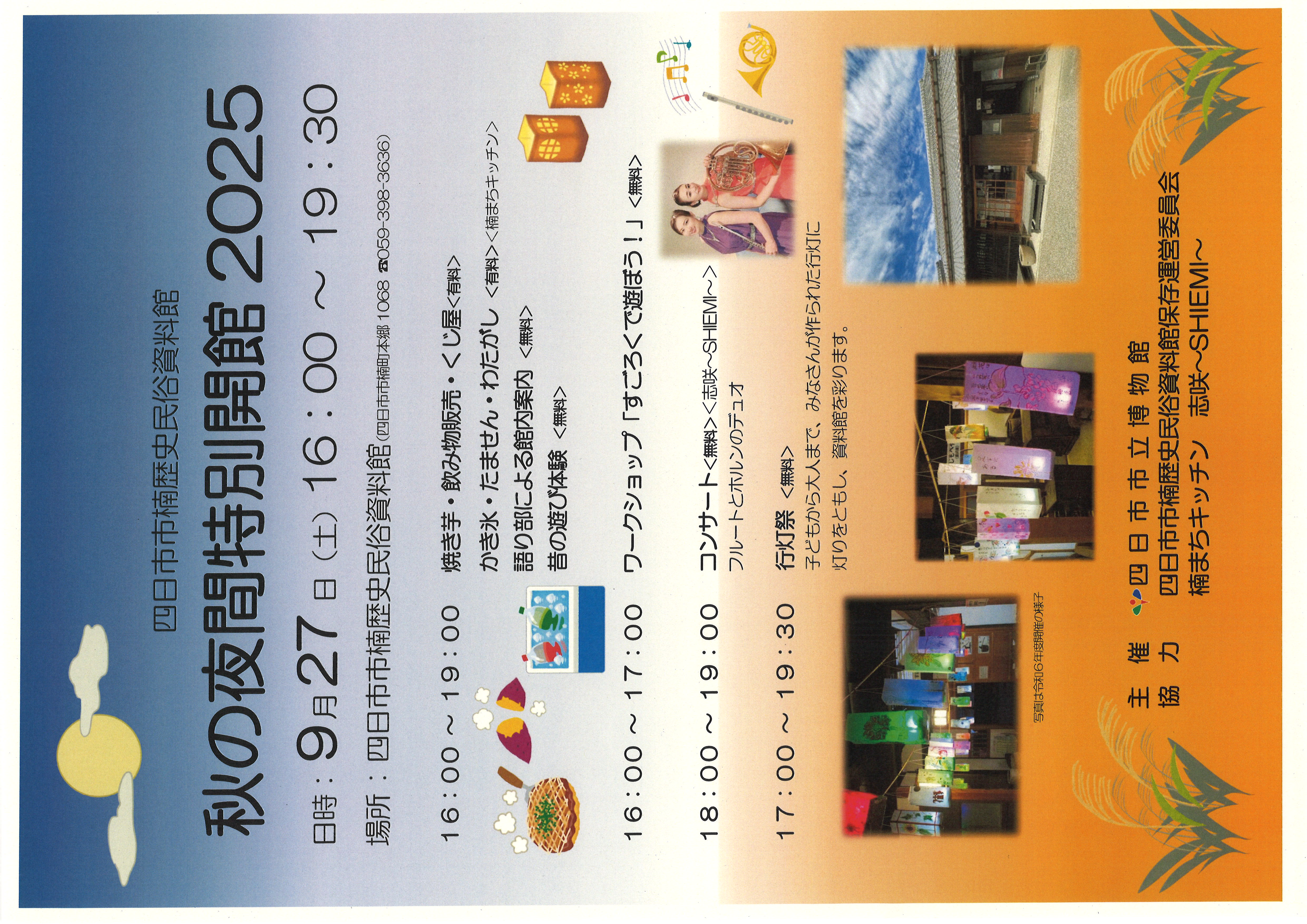 - 【日永・塩浜・楠・河原田・内部地区】(ポスター)「楠歴史民俗資料館「秋の夜間特別開館」(JPG/2MB)