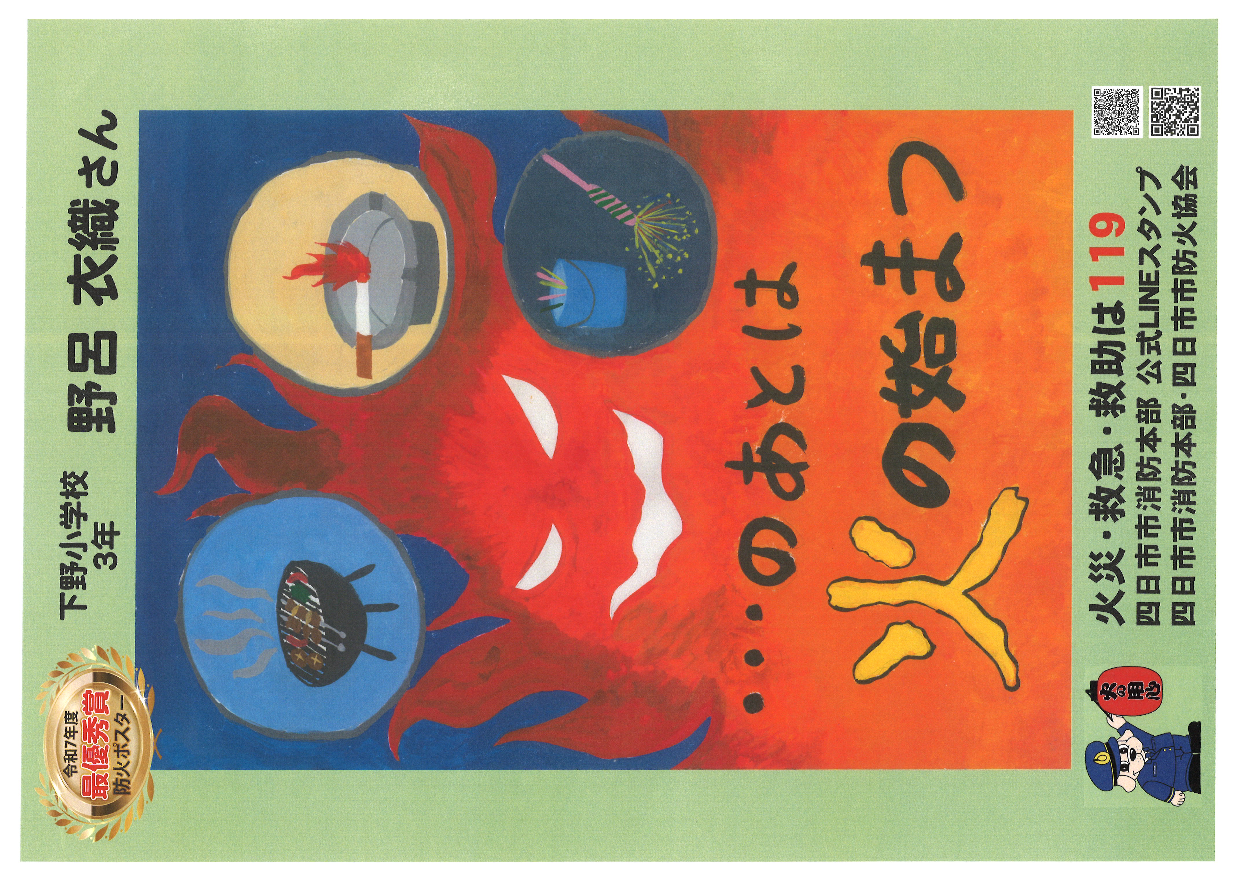 - 【大矢知、八郷、県、桜、四郷、小山田、水沢、日永、河原田地区】(ポスター)「秋の火災予防運動予防啓発(低学年の部)」(PDF/3MB)