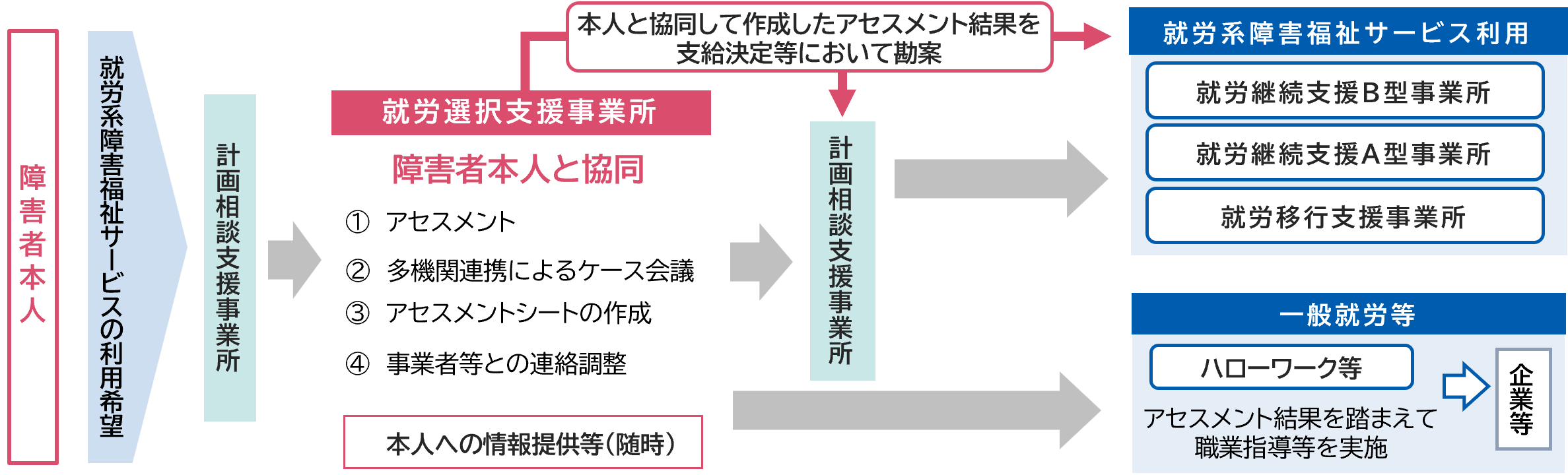 令和7年10月1日から、障害者本人が就労先や働き方についてより良い選択ができるよう、就労アセスメントの手法を活用して、本人の希望、就労能力や適性等に合った選択を支援する「就労選択支援」が開始されました。