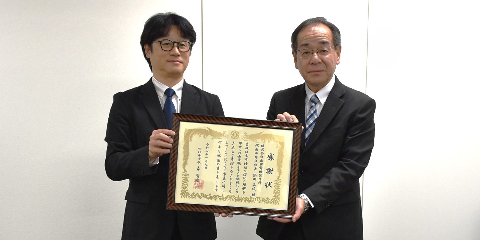 令和8年1月9日には、本市シティプロモーション部観光交流課長が同社の名古屋営業所を訪問し、名古屋営業所長・吉村 和記様にご寄附への感謝状の贈呈を行いました。